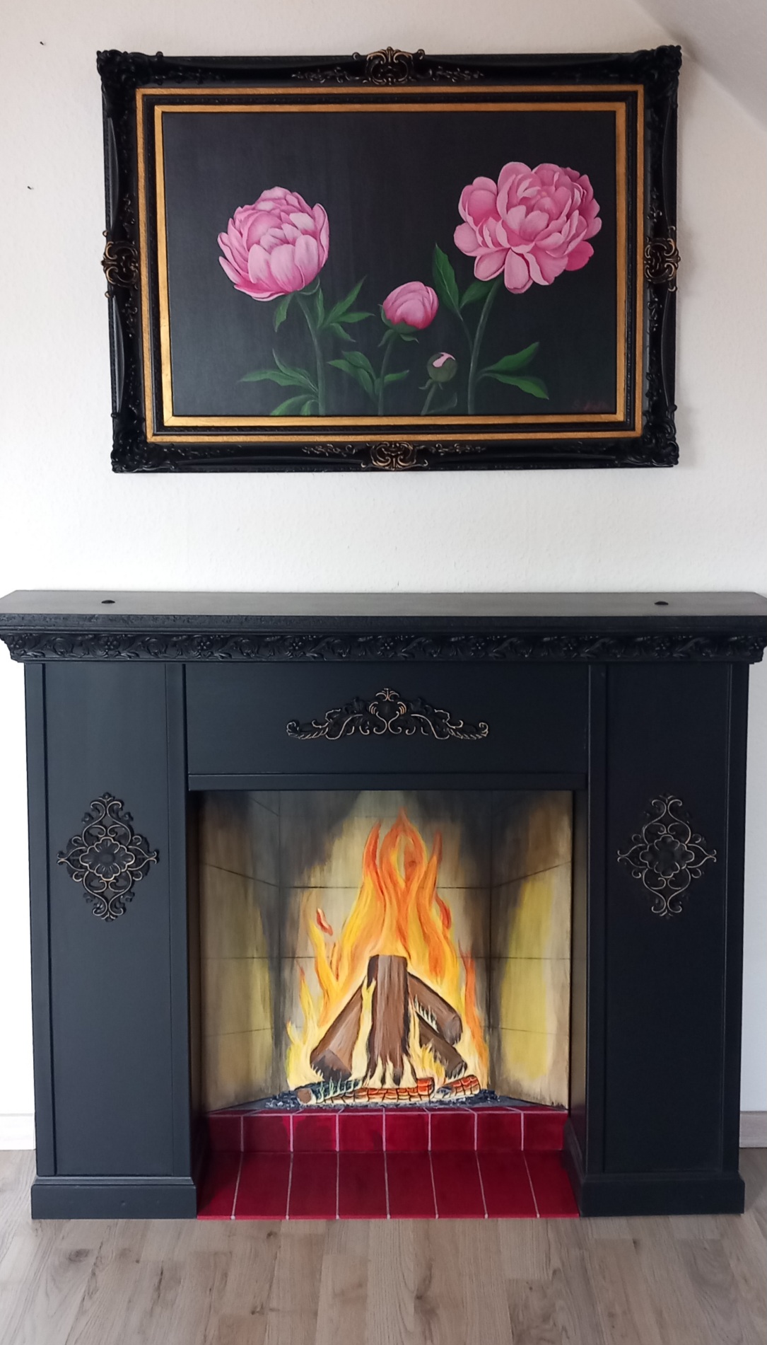 Ich male überwiegend gegenständliche Bilder in Acryl und das am liebsten auf schwarzem Malgrund.