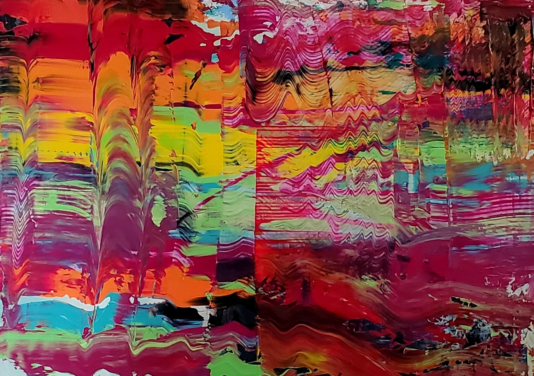 Meine Leidenschaft gilt der abstrakten Malerei. Intuitive Herangehensweise an Farben und an die verschiedenen Techniken mit Marmormehl, Asche und Sand und alles