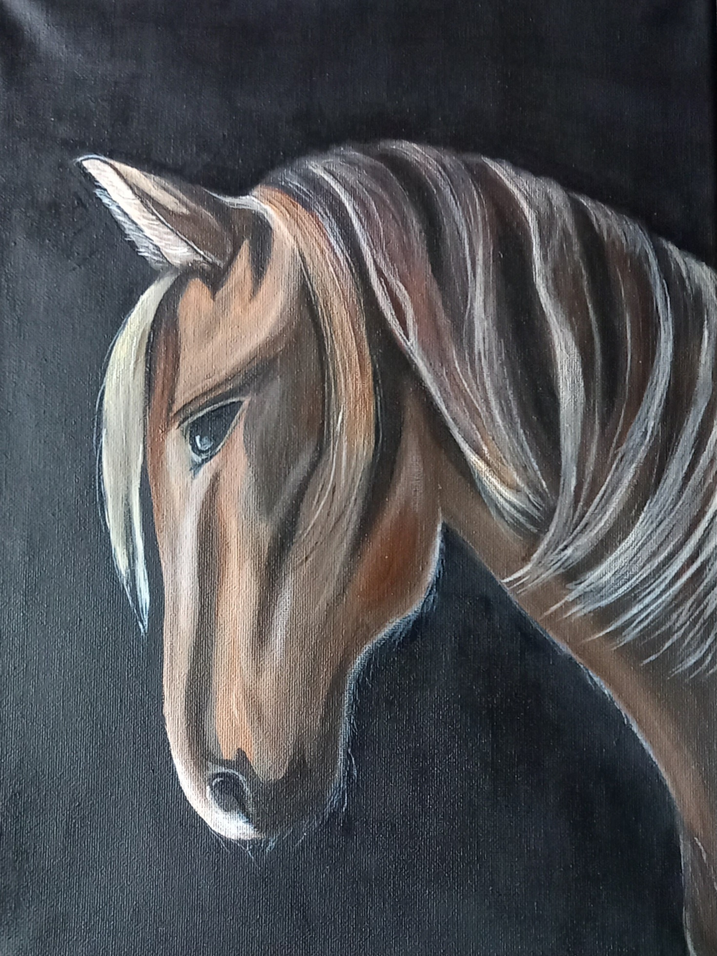 Ich male überwiegend gegenständliche Bilder in Acryl und das am liebsten auf schwarzem Malgrund.